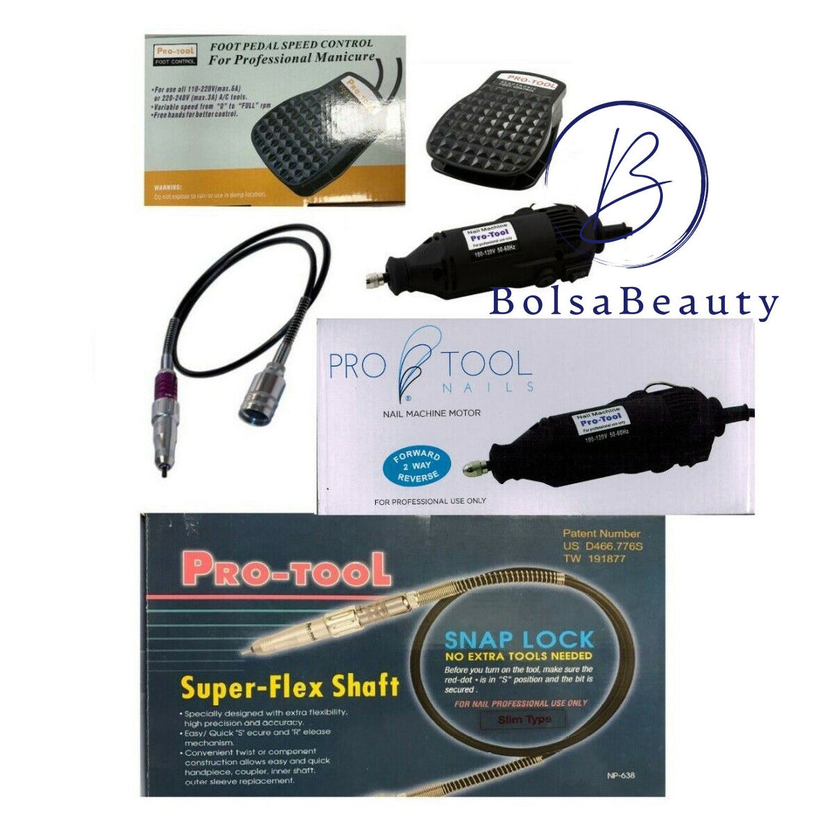 - The kit contains (1) Pro-Tool Drill Machine (1) Flexible Shaft (1) Foot Control